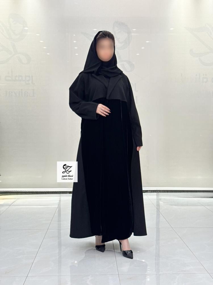 عبايه بليزر بقماش جوخ مع مخمل بيج