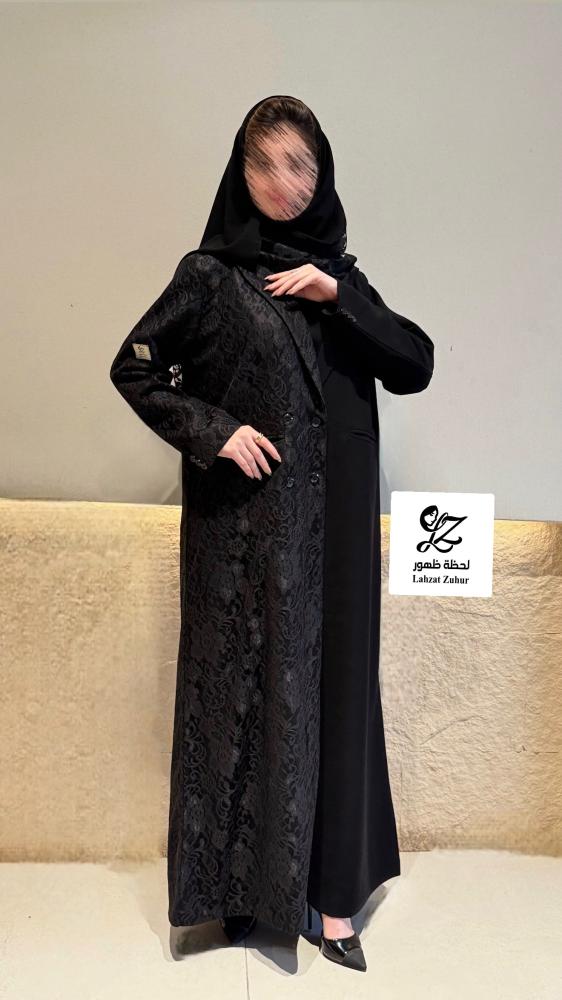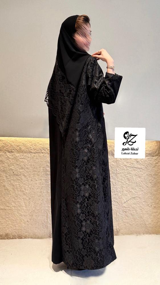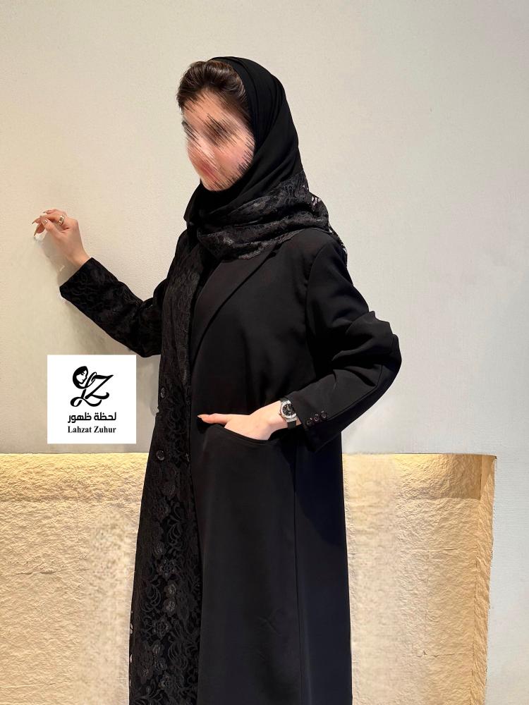 عبايه بليزر بقماش رموش بتدخيل دانتيل اسود