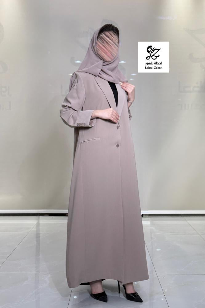 عبايه بليزر رسمي مبطنه بقماش رموش لون بيج