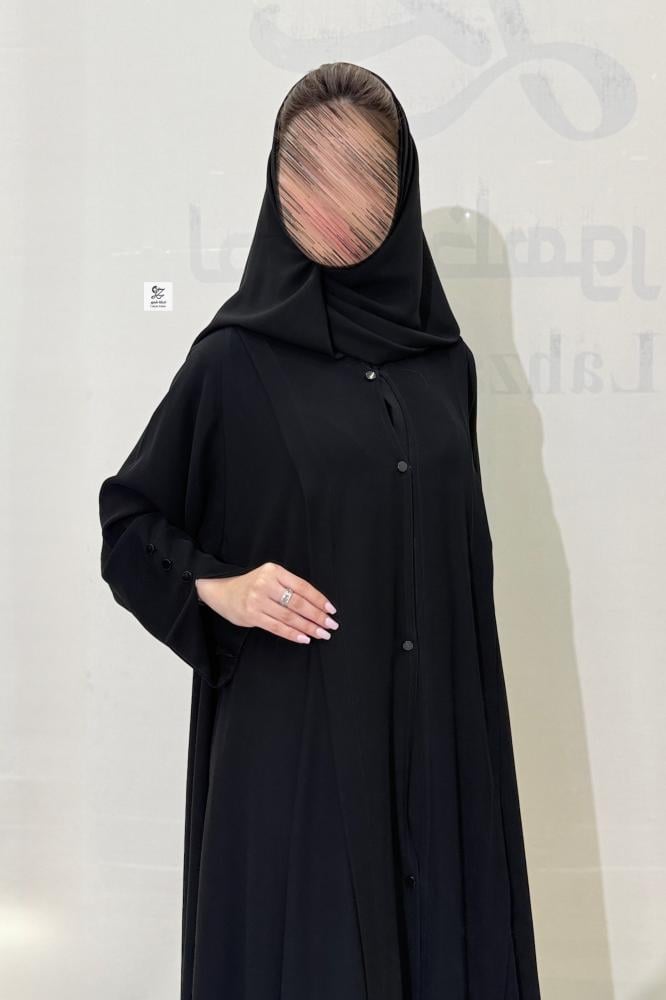 عبايه تربل كلوش بقماش ملكي اصلي اسود فاحم