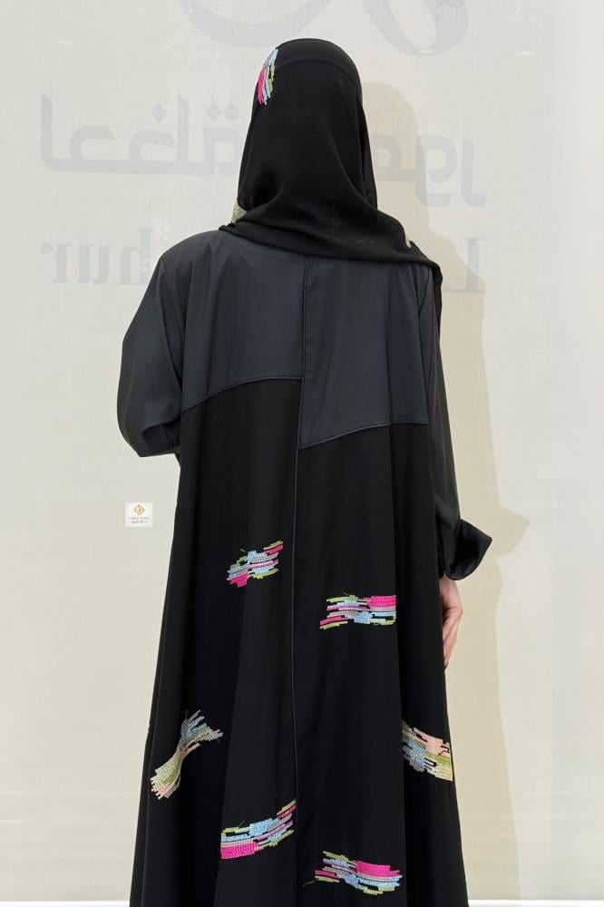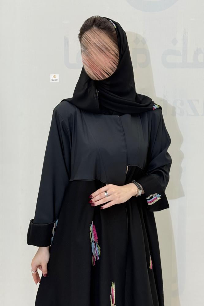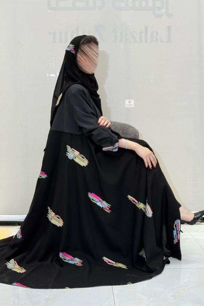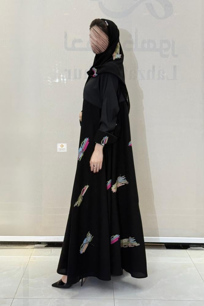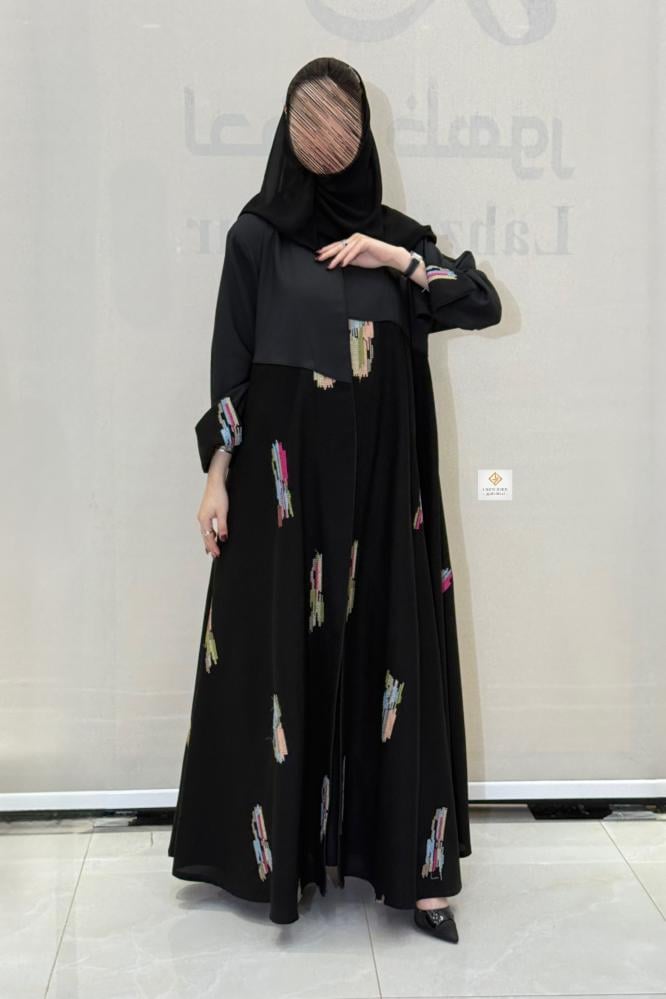 عبايه حنين كلوش كامل بقماش كريب الابداع مع طرحه مطرزه