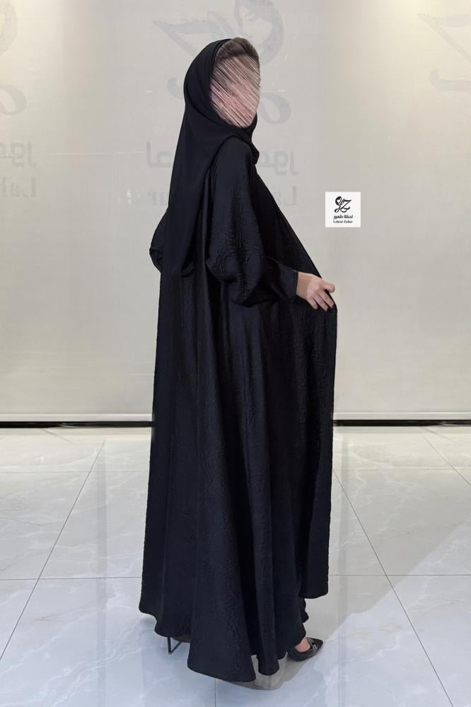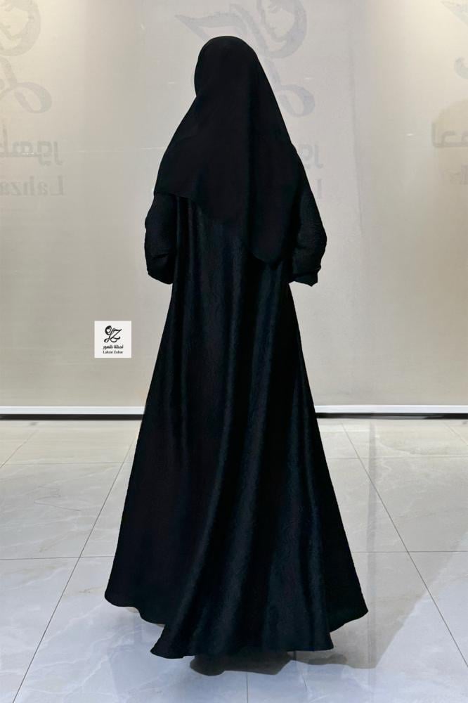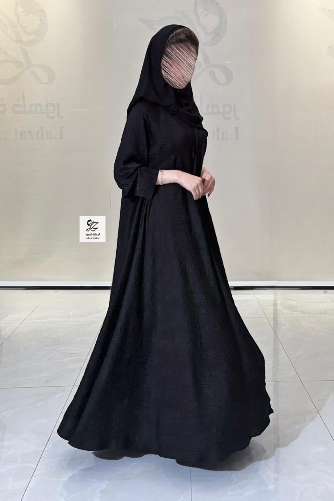 عبايه دبل كلوش بقماش حرير اسود مشجر
