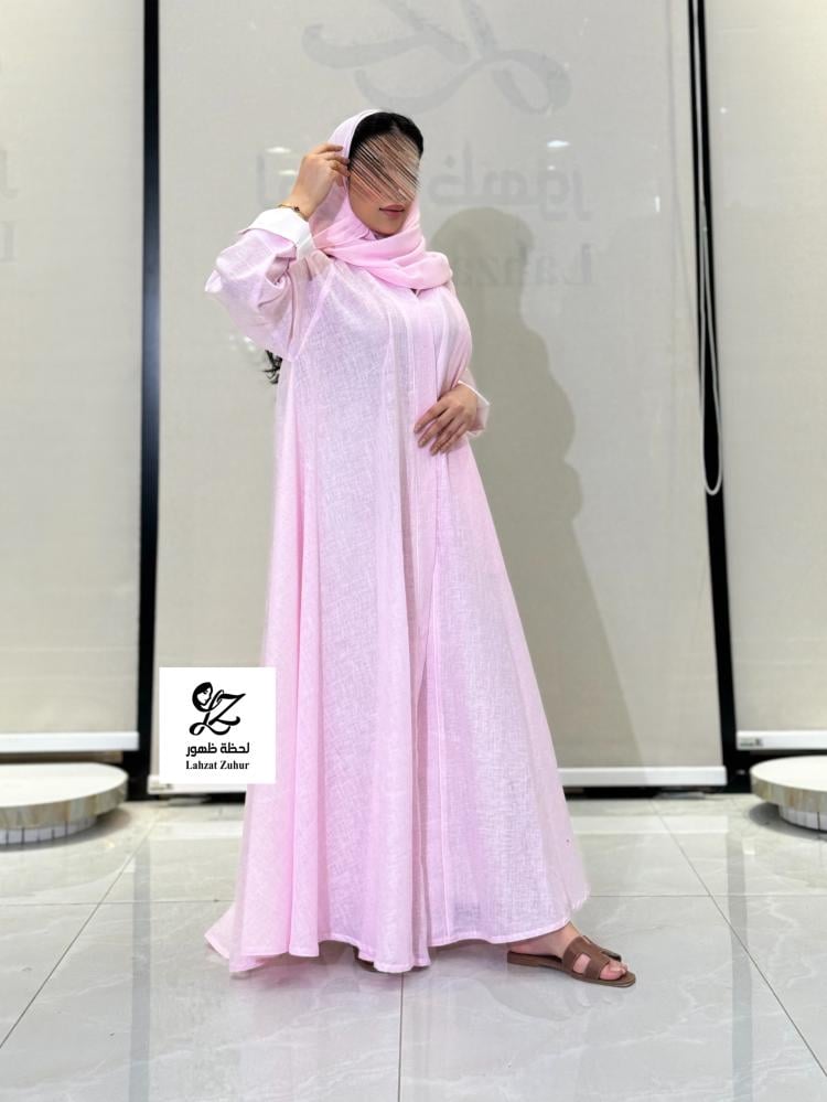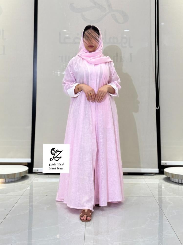 عبايه دبل كلوش بقماش لنن هندي بنك