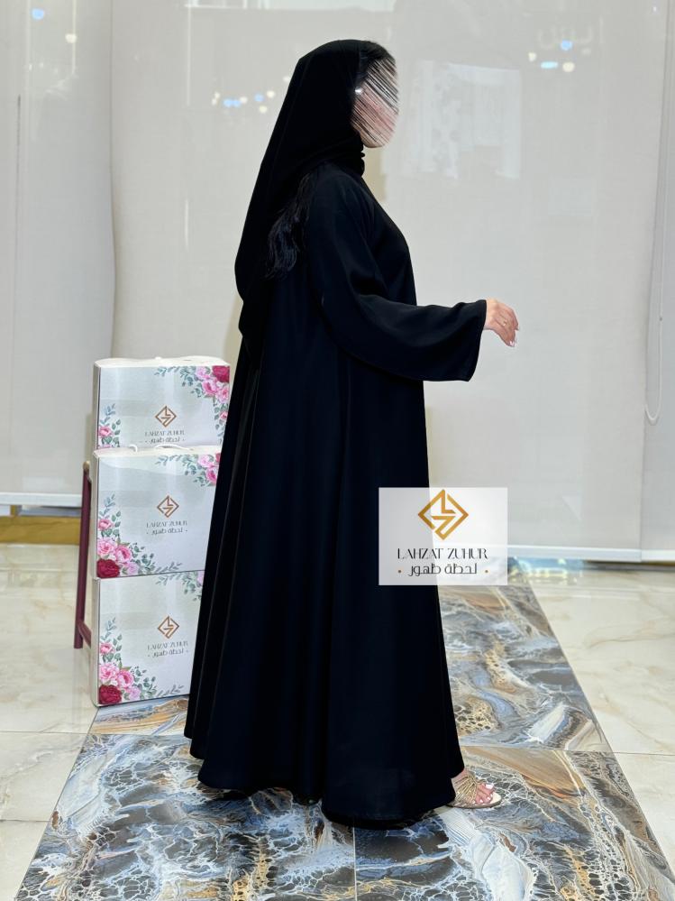عبايه دبل كلوش كم وسيع بقماش بلاك بيري اسود