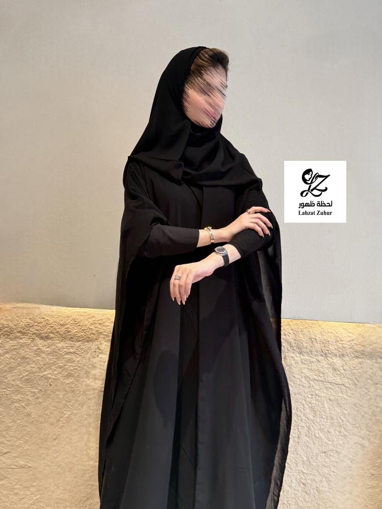 عبايه طله بقماش كريب الابداع مع شيفون اسود  كم استرتش