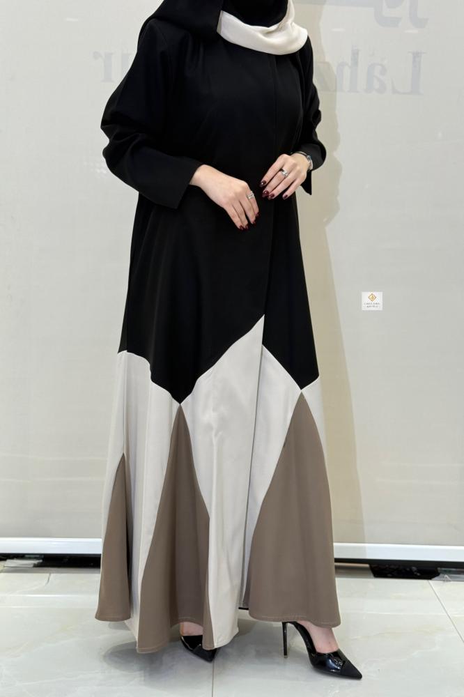 عبايه عبير بقصه كلوش بقماش كريب صيفي بتدخيلات كسرات الوان