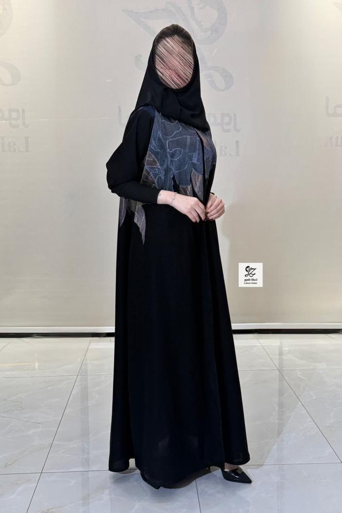 عبايه كلوش بقماش كريب الابداع بتدخيل تطريز ناعم كم استرتش