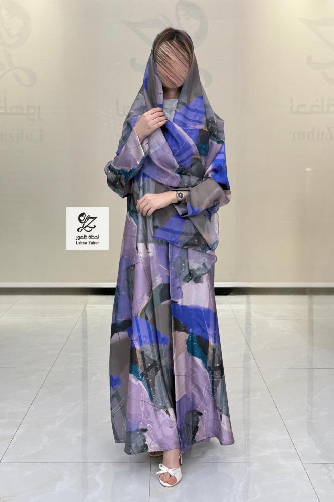 عبايه موج بقصه كلوش مشجره كامل مع الطرحه