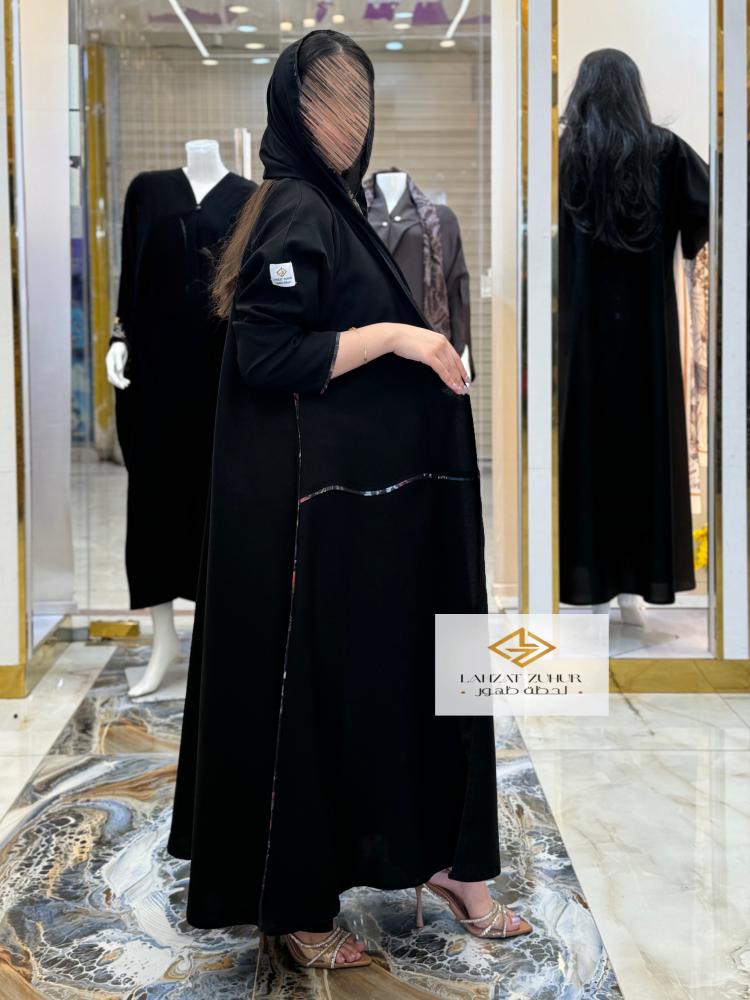 عبايه نص كلوش بقماش كريب الابداع تحديد ميكادو ناعم