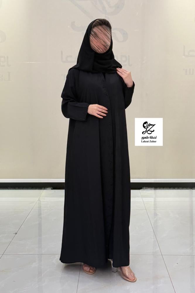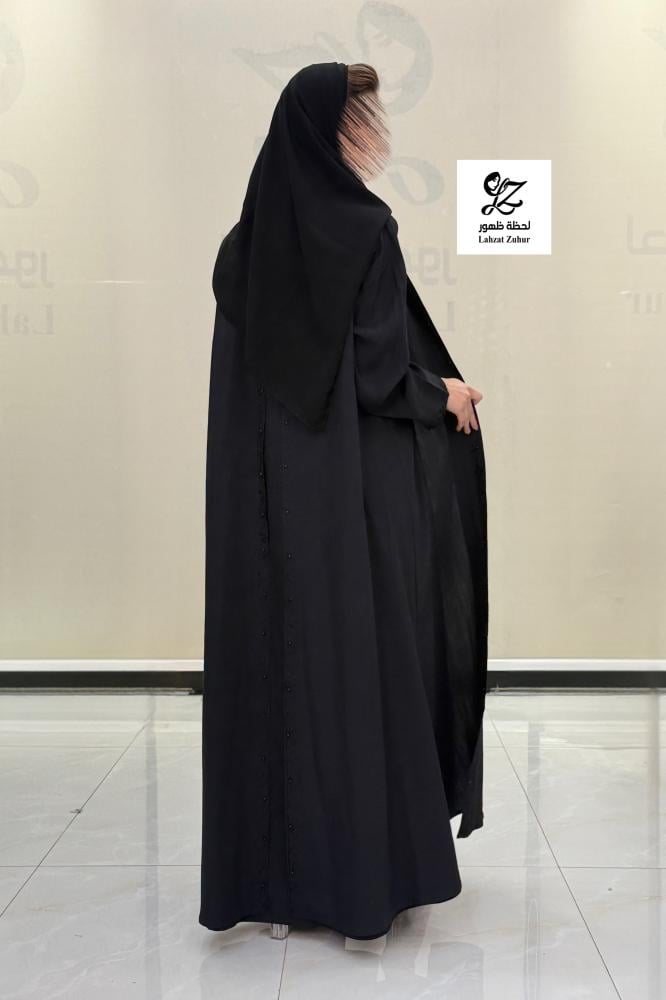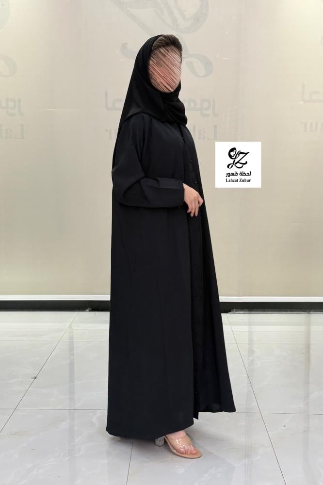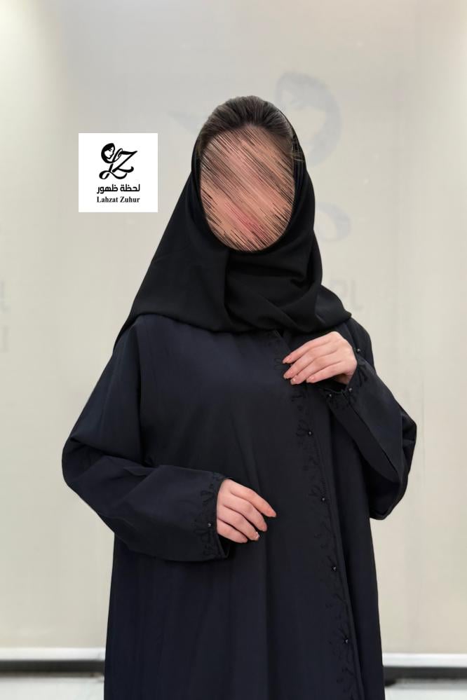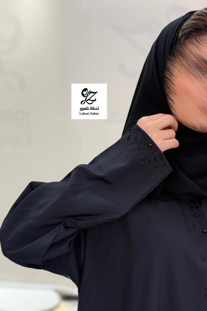 عبايه نهار بقصه Aبقماش حرير ياباني بتدخيل تطريز ناعم لون اسود