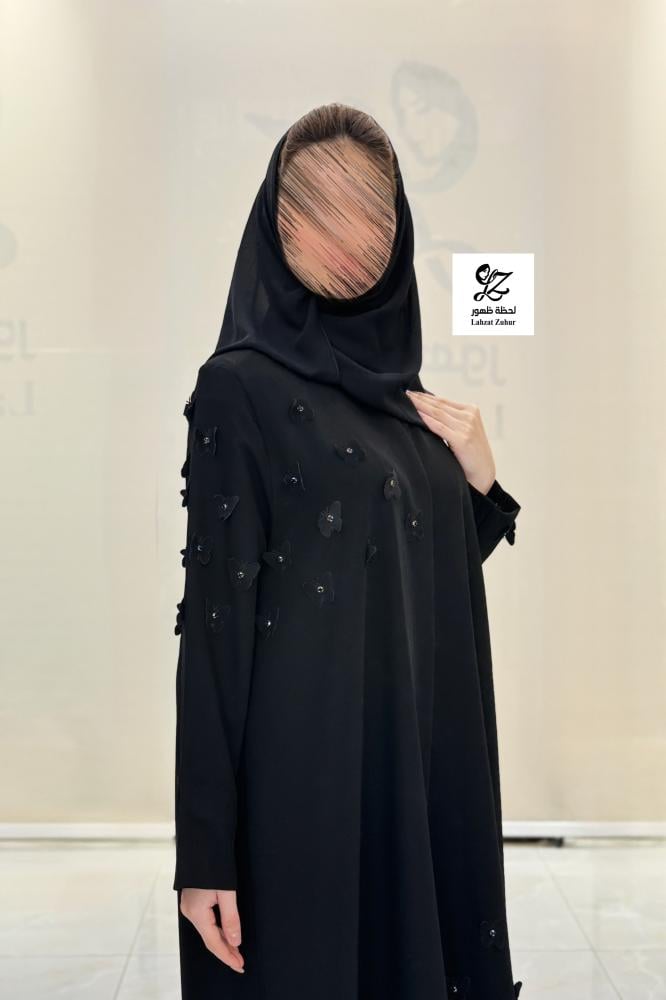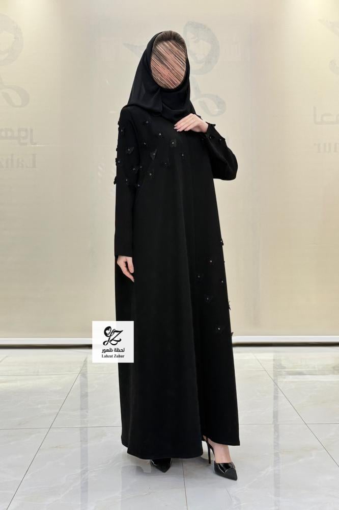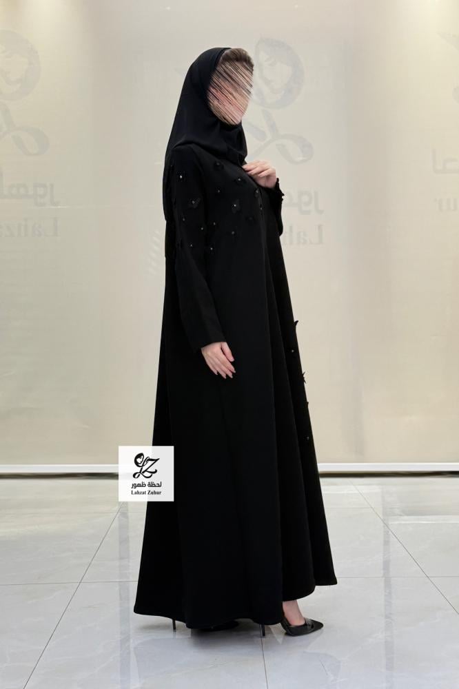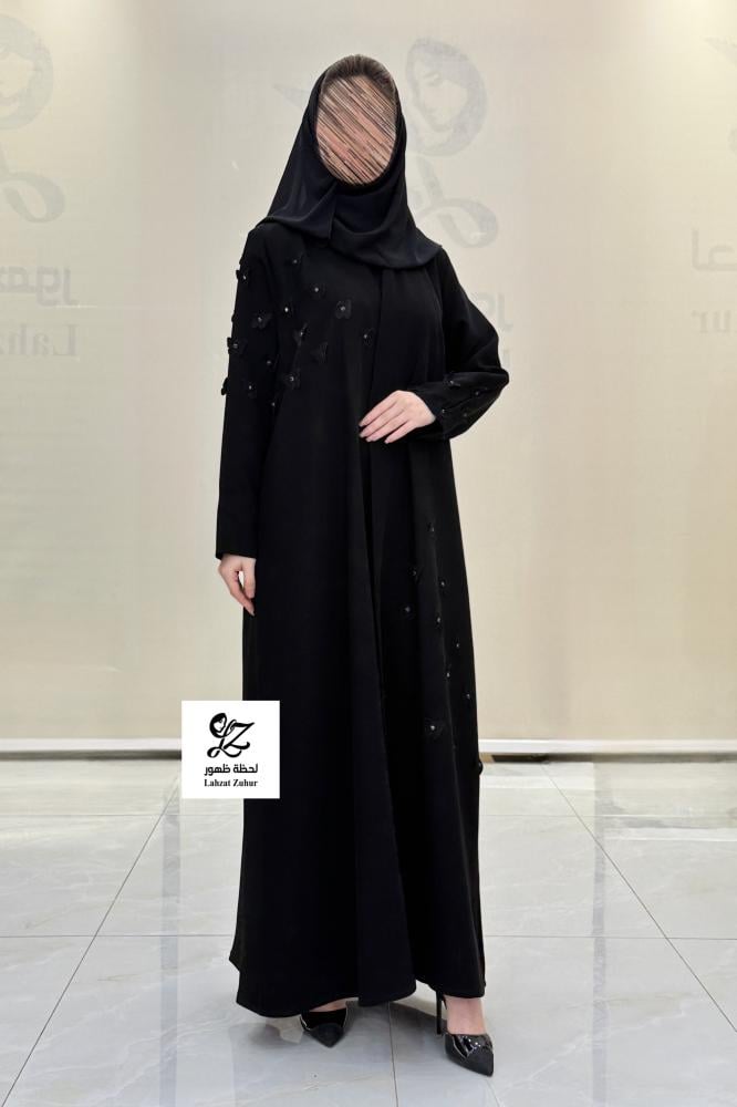 عبايه نور نص كلوش بقماش سيراميك اصلي بتدخيل شك اسود ناعم