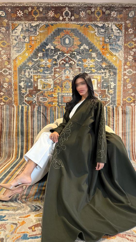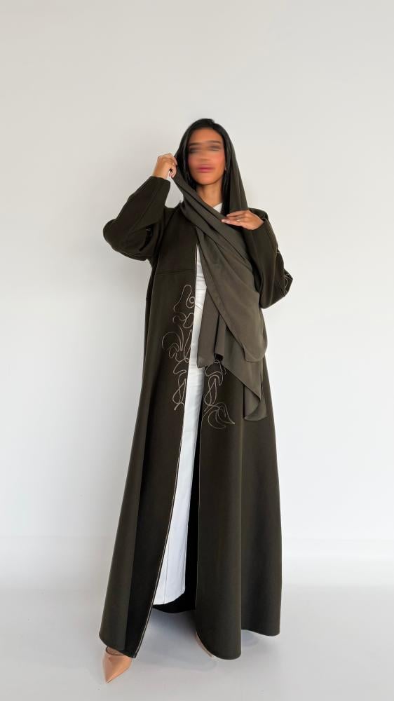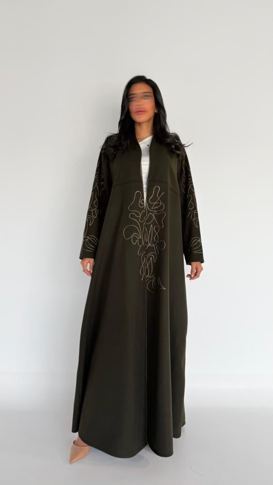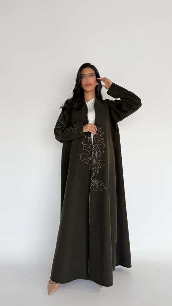 عبايه وتين بقصه Aبقماش جوخ زيتي